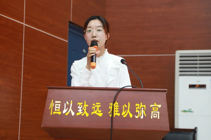 徒弟代表张兴雨老师发言,她承诺一定会在自己的岗位上兢兢业业,认真负责,坚守职业操守,立志做理想信念坚定,思想品德高尚,学识水平深厚的优秀人民教师,在职业的这条路上,不断深入学习,永葆本心,贯彻习近平总书记的话语——“不忘初心,砥砺前行”。