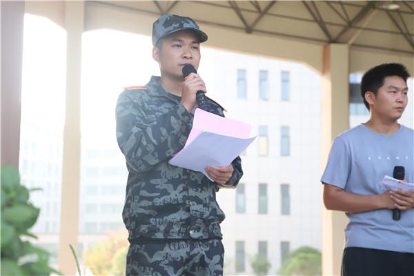军训团总教官姚鹏在动员大会上发言,铿锵有力的讲话,充分展示了军人的魄力,树立了坚定的信心。他代表全体教官作出以下承诺:认真负责,严格要求,科学施训,因人施教,确保军训的安全与质量。