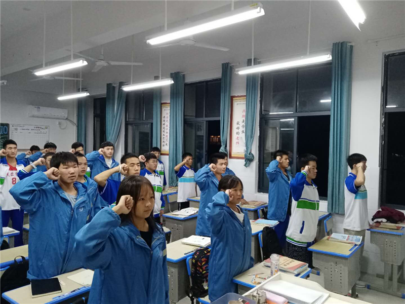 全体师生起立,高举右手宣誓: