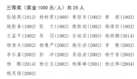 三等奖学金名单如下: