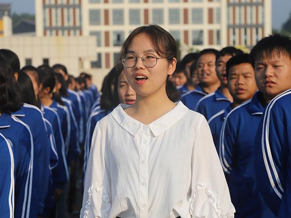 学生代表姚炅心带领全体师生共同唱响《我和我的祖国》,“我和我的祖国,一刻也不能分割,无论我走到哪里,都流出一首赞歌……”。
